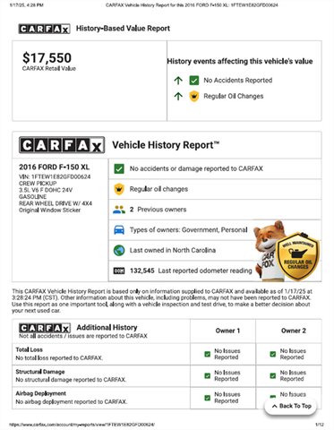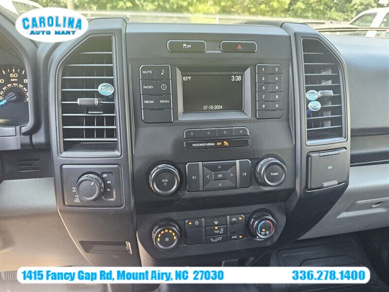 Introducing a 2016 Ford F-150 XL in excellent overall condition. This Oxford White truck is powered by a 3.5L Flex Fuel V6 engine that delivers 282hp and 253ft. lbs. of torque. The interior is outfitted with Dark Earth Gray vinyl seating that complements the exterior. As for factory default features, this truck comes equipped with air conditioning, a rearview camera, AM/FM radio, and a 4.2-inch display screen. The XL trim also includes a tilt/telescoping steering wheel, a 60/40 split-folding rear seat, and a 6-speaker audio system.